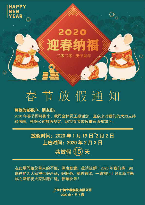 上海仁捷生物科技有限公司 公司地址:上海市杨浦区铁岭路32号1519-10室 邮箱:renjiebio@163.com