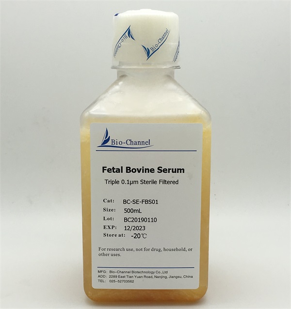 本产品以健康胎牛血液为原料加工而成,经0.65μm、0.22 μm微孔滤膜预过滤,3次0.1μm微孔滤膜精过滤后,获得成品胎牛血清。本产品无支原体污染、内毒素水平极低。本产品已通过多种细胞培养验证实验、细胞生长状态良好,细胞倍增速度正常。